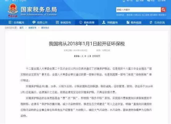 一、我國將從2018年4月1日起開征環(huán)保稅