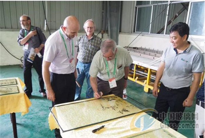 參加投產儀式的嘉賓在真空玻璃產品上簽名
