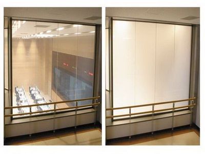 當(dāng)通電時,液晶膜中的高分子液晶材料在電場的作用下,會進(jìn)行有序排列,使光線可以輕易穿透玻璃變成透明狀,而反之關(guān)閉電源時,高分子液晶材料會被打亂不能正常排序成霧化狀態(tài),讓你根本看不透。