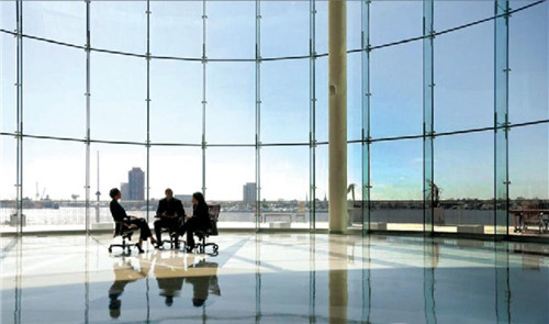 溫致變色玻璃在滿足傳統(tǒng)夾層玻璃的安全防爆、隔音、保暖的優(yōu)良性能外,還可以根據(jù)光照和溫度自主調(diào)節(jié)顏色,在淺色和深色狀態(tài)可逆轉(zhuǎn)變,遮陽系數(shù)動態(tài)可變,同時保持可透視性,將采光和遮陽完美融合。它是一款專為建筑設(shè)計的“變色眼鏡”,增加了建筑玻璃本身的遮陽功能,節(jié)省遮陽材料的使用。更重要的是它還能夠感知外界溫度的變化為建筑自主更換外衣,增強(qiáng)隔熱保溫雙向性能,賦予傳統(tǒng)建筑更加低碳,更加智能的特性。