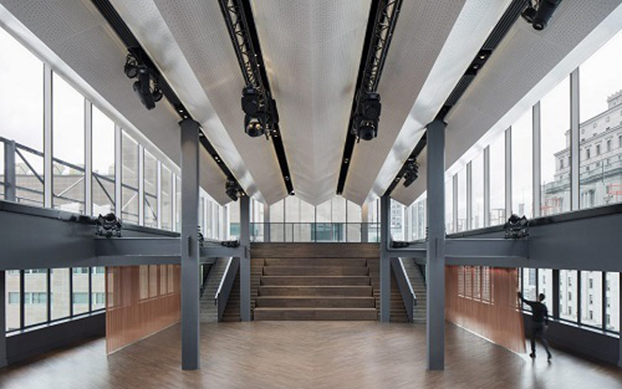 活動(dòng)空間面積約為1200平米,可以容納220人。設(shè)計(jì)體現(xiàn)了蒙特利爾開(kāi)放的社會(huì)精神,這片實(shí)驗(yàn)性的會(huì)議場(chǎng)地將促進(jìn)人們的交流合作,加強(qiáng)商業(yè)創(chuàng)造力。多變的空間可以滿(mǎn)足不同活動(dòng)需求,從娛樂(lè)活動(dòng),團(tuán)隊(duì)建設(shè)到高層聚會(huì),高科技的空間設(shè)置使這里可以滿(mǎn)足不同的使用需求,帶給人們難以忘懷的出色體驗(yàn)。在這個(gè)富有視覺(jué)沖擊力的空間中,使用者可以鼓起勇氣邁出舒適區(qū),進(jìn)行更多大膽的嘗試。 來(lái)源:中玻網(wǎng)