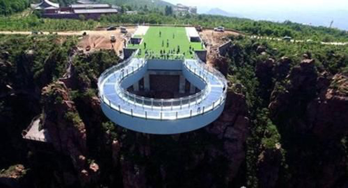 河南省鄭州市的伏羲山玻璃環(huán)廊從2017年10月份開工建設,前后歷經八個多月,于2018年6月正式開通,是目前全球最長玻璃環(huán)廊,該玻璃橋面一共采用了150塊三層的鋼化夾膠玻璃鋪設,環(huán)廊伸出懸崖30米,距離峽谷地面高度為360米,比之前世界第一美國科羅拉多大峽谷玻璃環(huán)廊還長出近9米。如今的伏羲山玻璃環(huán)廊已經成為紅石林景區(qū)著名的“網紅景點”,許多游客都是莫名而來。