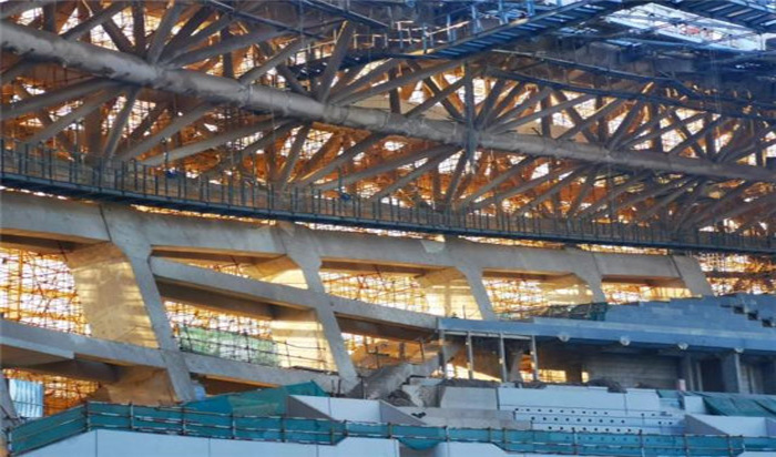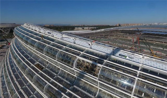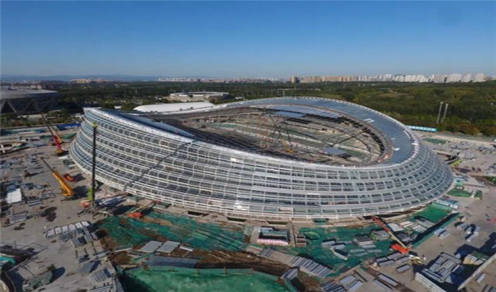 國(guó)家速滑館10月底將完成所有3360塊玻璃幕墻的安裝工作。速滑館頂板也在逐塊吊裝,國(guó)家速滑館整體造型初亮相,下一步國(guó)家速滑館將進(jìn)入屋頂安裝和機(jī)電設(shè)備及裝修部分安裝。 此次安裝的幕墻并非傳統(tǒng)意義的整塊平整玻璃,而是由一塊塊被彎成不同曲度的玻璃幕墻拼裝而成。城建集團(tuán)相關(guān)負(fù)責(zé)人介紹,整個(gè)曲面幕墻“骨架”由160根S形鋼龍骨組成,每根S形鋼龍骨由4塊鋼板拼焊而成,最長(zhǎng)為32.7米,重約6噸,最短有16.1米。 所有玻璃幕墻插入鋼龍骨之中,最終拼出的玻璃幕墻總長(zhǎng)度達(dá)13.2公里,共計(jì)22條的“冰絲帶”。如果說(shuō)讓冰絲帶飄舞起來(lái)的是鋼龍骨,那么讓冰絲帶晶瑩剔透的則是上面的花紋,所有玻璃幕墻上的冰花紋都通過(guò)一種特殊的彩釉工藝涂刷燒制出來(lái),牢牢貼在幕墻上,達(dá)到冰雪晶瑩剔透的完美視覺感受。 去年5月,國(guó)家速滑館工程?hào)|車庫(kù)N20段負(fù)一層頂板澆筑完成,標(biāo)志著國(guó)家速滑館工程首段地下結(jié)構(gòu)完成地下結(jié)構(gòu)施工。同年8月初,1911塊預(yù)制看臺(tái)板開始吊裝。北京城建集團(tuán)副總工程師李久林介紹,這些看臺(tái)板安裝團(tuán)隊(duì)由當(dāng)年國(guó)家體育場(chǎng)(鳥巢)看臺(tái)板原班人馬施工。10年前,北京城建集團(tuán)國(guó)家體育場(chǎng)項(xiàng)目團(tuán)隊(duì)研發(fā)出了清水混凝土看臺(tái)板,看臺(tái)板以直代曲,弧形部分是通過(guò)一段段直線看臺(tái)板拼裝出來(lái)。國(guó)家速滑館項(xiàng)目部研制出了國(guó)內(nèi)首例預(yù)制弧形看臺(tái)板,使看臺(tái)板變直為曲,與冰絲帶靈動(dòng)飄逸的風(fēng)格貼合。 如果說(shuō)看臺(tái)板是國(guó)家速滑館的外在展示,那么高強(qiáng)厚板鋼材則是讓國(guó)家速滑館完美呈現(xiàn)的內(nèi)核。2008年,國(guó)家體育場(chǎng)使用了由李久林團(tuán)隊(duì)研發(fā)的700多噸國(guó)產(chǎn)Q460高強(qiáng)厚板鋼材。如今在國(guó)家速滑館現(xiàn)場(chǎng),一種名為高釩密閉索的材料中,有了Q460鋼的身影。這種材料具有高強(qiáng)防腐性和耐久性,將作為冰絲帶未來(lái)屋頂結(jié)構(gòu)主要支撐。 整個(gè)冰絲帶有一圈作為結(jié)構(gòu)邊框的環(huán)形桁架,技術(shù)人員在南北兩側(cè)設(shè)置了塔吊進(jìn)行吊裝,而在東西兩側(cè)使用現(xiàn)場(chǎng)拼裝后,再用專業(yè)設(shè)備滑移到指定位置,使用數(shù)據(jù)信息設(shè)備對(duì)進(jìn)行精確分析。通過(guò)平行作業(yè),讓整個(gè)環(huán)形桁架整體順利安裝到位。相比鳥巢的超級(jí)用鋼量,冰絲帶屋面采用了單層雙向正交馬鞍形索網(wǎng),整個(gè)屋面僅用600噸鋼材就可完成。冰絲帶屋頂使用了79對(duì)高釩封閉索對(duì)屋面進(jìn)行張拉,如同傘骨般撐起屋面,提高結(jié)構(gòu)安全性。 在可持續(xù)理念貫徹方面,由于制冰和封閉空間,自然采光變成了室內(nèi)照明,但冰絲帶中使用的能源回收利用系統(tǒng)能回收制冰中產(chǎn)生的86%熱能,并將其用于運(yùn)動(dòng)員洗澡、融冰加熱。 來(lái)源:中玻網(wǎng)