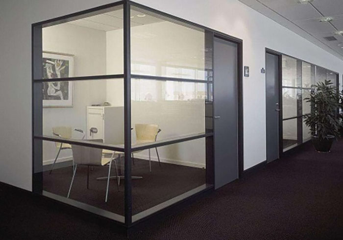 4、隔音效果佳:玻璃隔斷門框內(nèi)側(cè)與門底可安裝密封條,可極大提高隔音性能。