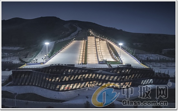 而微觀上在山體和過境道路的位置卻呈現(xiàn)出斷崖的剖面狀態(tài),設(shè)計(jì)應(yīng)對的策略正是利用其中12米的高差,將服務(wù)與被服務(wù)的功能在豎向進(jìn)行劃分。讓雪場的空間延伸至服務(wù)中心上方,而采用全玻璃幕墻打造的多功能服務(wù)中心則被隱藏在滑雪者的視線之外,而只見得遠(yuǎn)山美景和眼前的急速滑道。這樣的設(shè)計(jì),致使整個(gè)接待大廳若有似無的隱藏于山間,設(shè)計(jì)十分巧妙。