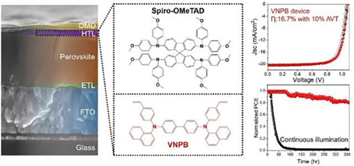 據(jù)研究人員介紹,鈣鈦礦太陽能電池結(jié)構(gòu)為陰較-電子傳輸層-鈣鈦礦的光吸收層(主動層)-電洞傳輸層-陽較,通常都采用Spiro-OMeTAD材料作為電洞傳輸層。而他們則使用了一種可以制成聚合物的農(nóng)業(yè)生產(chǎn)體系半導(dǎo)體,來代替這一常用的太陽能電池材料,由此產(chǎn)生了驚人的效果。