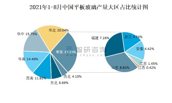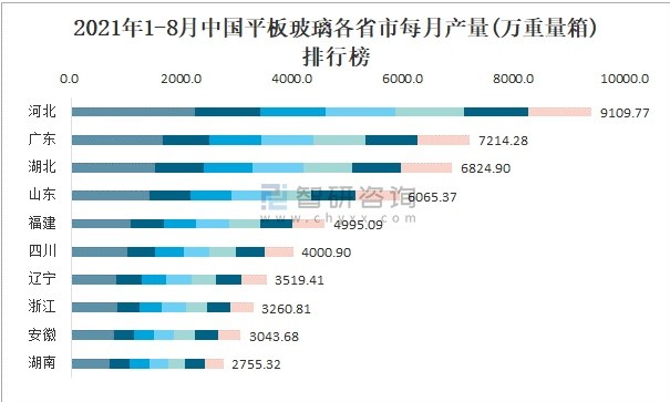 根據(jù)國家統(tǒng)計(jì)局?jǐn)?shù)據(jù)顯示:2021年8月中國平板玻璃產(chǎn)量為8886萬重量箱,同比增長9.4%;2021年1-8月中國平板玻璃累計(jì)產(chǎn)量為68806.3萬重量箱,累計(jì)增長11%;2015-2020年中國平板玻璃產(chǎn)量逐年遞增,2020年達(dá)到最高。 近一年中國平板玻璃當(dāng)月產(chǎn)量及累計(jì)產(chǎn)量統(tǒng)計(jì)圖 數(shù)據(jù)來源:國家統(tǒng)計(jì)局,智研咨詢整理 2015-2020年中國平板玻璃產(chǎn)量及累計(jì)增長率統(tǒng)計(jì)圖 數(shù)據(jù)來源:國家統(tǒng)計(jì)局,智研咨詢整理 根據(jù)國家統(tǒng)計(jì)局?jǐn)?shù)據(jù)顯示:2021年各季度(第三季度目前暫只統(tǒng)計(jì)7月和8月數(shù)據(jù))中國平板玻璃主要集中在華東、華北、華中地區(qū)生產(chǎn);2021年1-8月中國平板玻璃產(chǎn)量大區(qū)分布相對均衡,其中華東地區(qū)產(chǎn)量最 高,特別是山東省貢獻(xiàn)了最多產(chǎn)量;2021年1-8月中國平板玻璃各省市產(chǎn)量呈現(xiàn)梯隊(duì)式分布,河北、廣東、湖北等省產(chǎn)量最多。 2021年各季度中國平板玻璃七大區(qū)產(chǎn)量統(tǒng)計(jì)圖 數(shù)據(jù)來源:國家統(tǒng)計(jì)局,智研咨詢整理 2021年1-8月中國平板玻璃產(chǎn)量大區(qū)占比統(tǒng)計(jì)圖 數(shù)據(jù)來源:國家統(tǒng)計(jì)局,智研咨詢整理 2021年1-8月中國平板玻璃各省市每月產(chǎn)量排行榜 數(shù)據(jù)來源:國家統(tǒng)計(jì)局,智研咨詢整理 注:2021年1月和2月未分開統(tǒng)計(jì),合計(jì)為2021年1-2月。 來源:中玻網(wǎng)