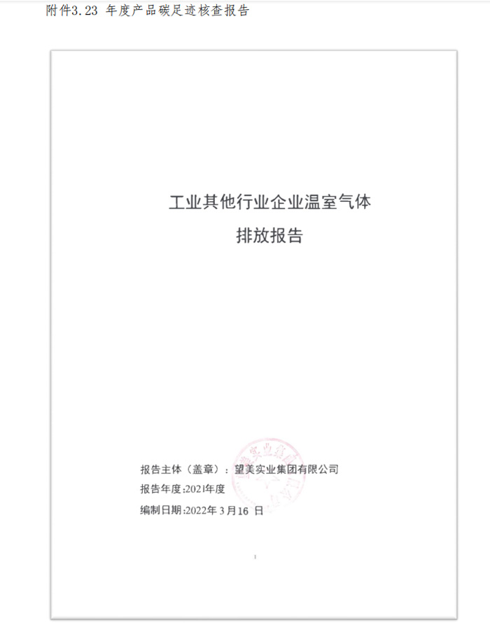 望美實(shí)業(yè)集團(tuán)有限公司2021年度產(chǎn)品碳足跡核查報(bào)告