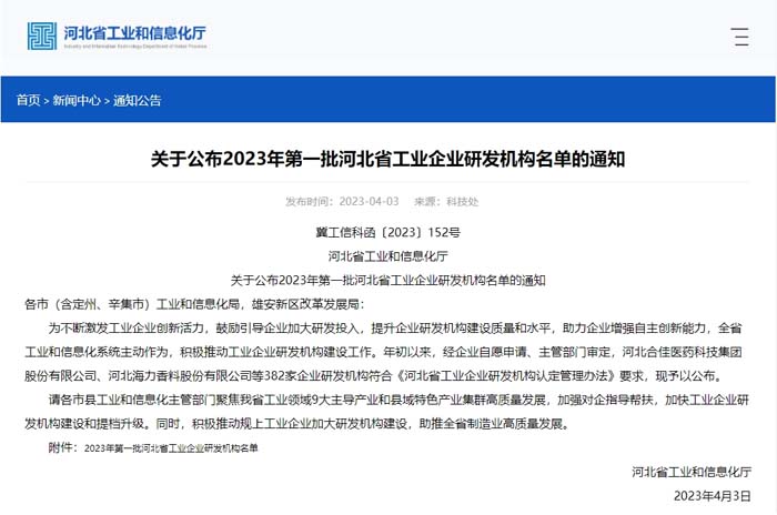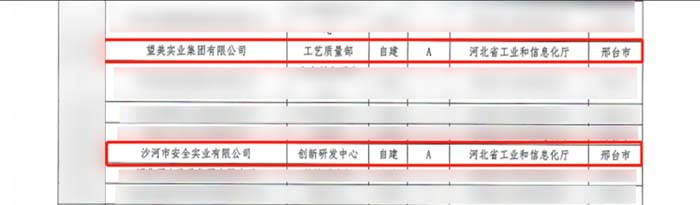 近日,河北省工業(yè)和信息化廳發(fā)布“關(guān)于2023年第一批河北省工業(yè)企業(yè)研發(fā)機(jī)構(gòu)名單的公示”。其中,望美集團(tuán)旗下的沙河安全公司及望美公司榜上有名。