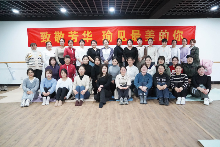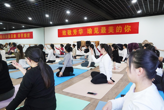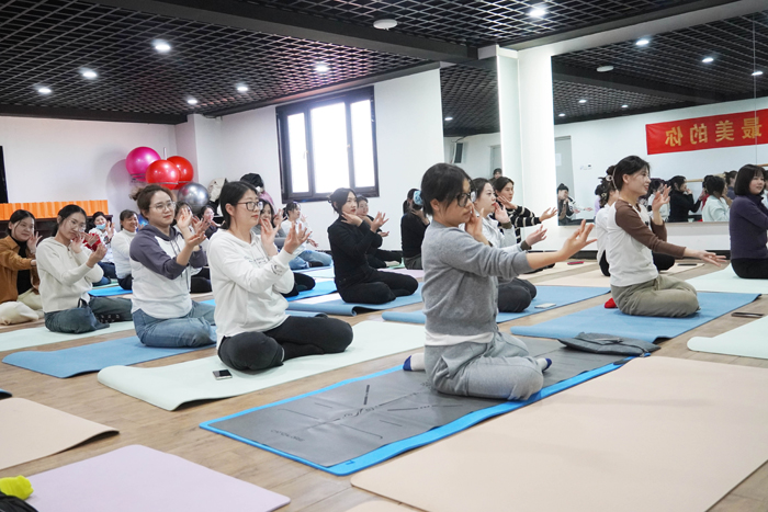 安全公司在文體中心瑜伽館邀請了38名女職工,為她們精心準(zhǔn)備了一場瑜伽公開課。