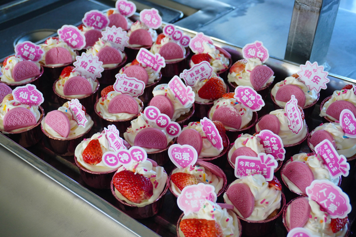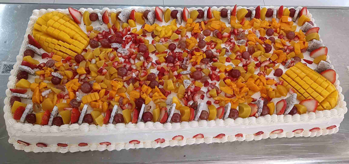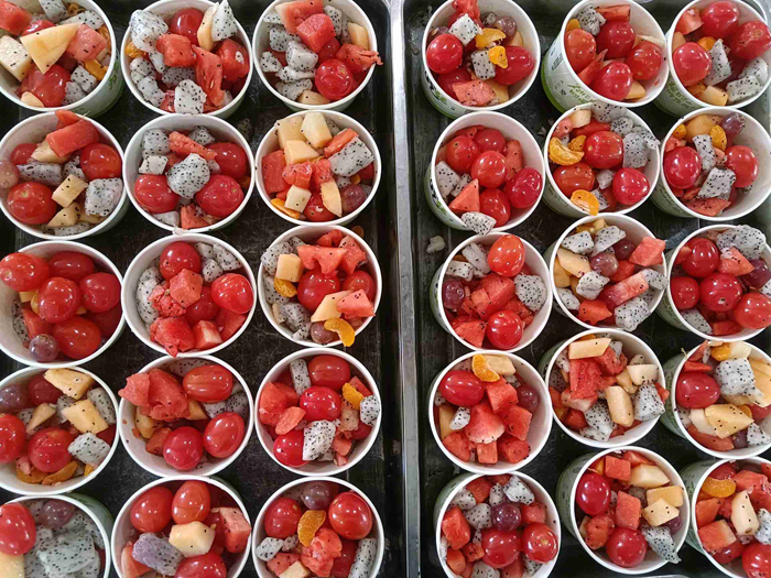 食堂精心準(zhǔn)備的蛋糕和水果。