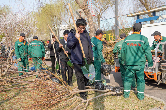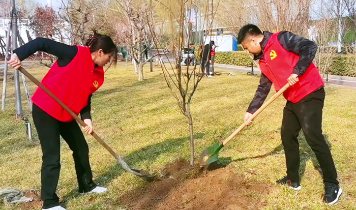活動(dòng)現(xiàn)場(chǎng),各部門排隊(duì)領(lǐng)取樹(shù)苗,積極參與其中。大家三五成團(tuán)相互配合,挖坑鏟土、扶苗填坑、平土澆水,用自己的實(shí)際行動(dòng)為望美“花園式工廠”增添一份綠色。