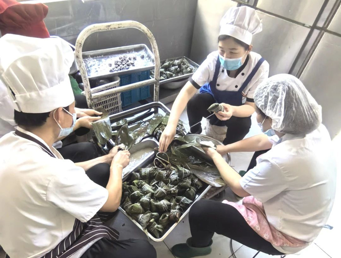 端午佳節(jié)的重要代表便是“粽子”,節(jié)前各個(gè)食堂便開(kāi)始準(zhǔn)備食材,為員工包粽子,滿滿的餡料帶著祝福,在端午當(dāng)天提供給員工食用。