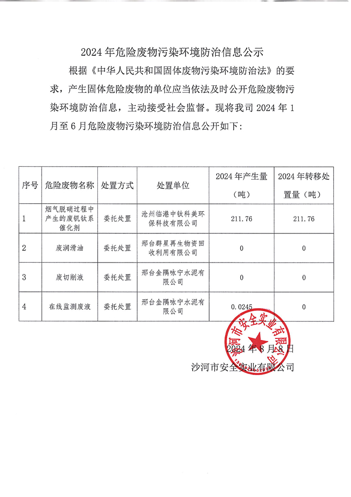 2024年危險(xiǎn)廢物污染環(huán)境防治信息公示