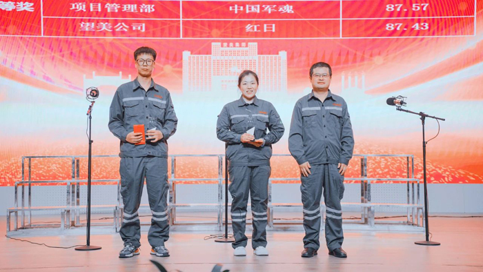 望美集團旗下安全公司、望美公司在文體中心禮堂合辦,天津公司、朝陽公司分別舉辦。 在等待比賽結(jié)果公示過程中,由多部門代表現(xiàn)場演唱歌曲《時代號子》。