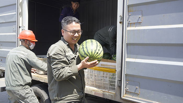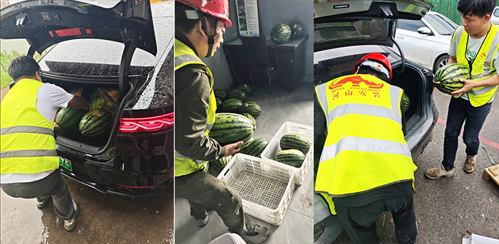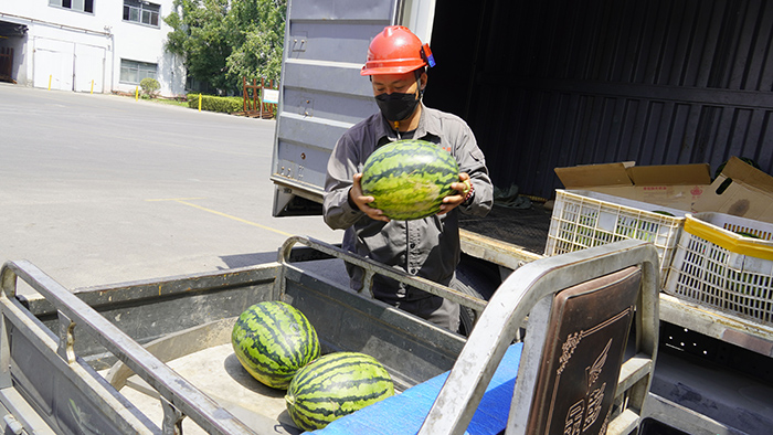 隨著盛夏將至,氣溫也逐步攀升,6月9日,沙河市的氣溫直逼42℃。望美時刻心系員工及合作伙伴,及時采買回來消暑解渴的大西瓜,為車間一線員工及戶外工作者和外部施工隊人員送去了一個個甘甜多汁的大西瓜,在酷熱中為他們帶來了一絲愜意的涼爽。