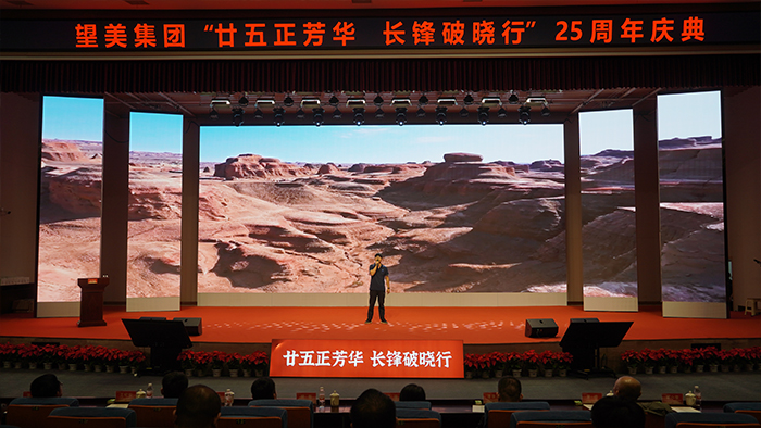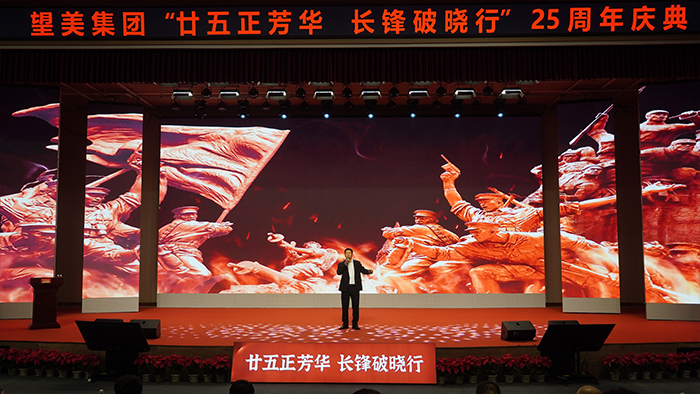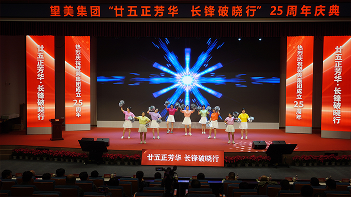 9月19日下午,望美集團(tuán)“廿五正芳華 長鋒破曉行”25周年慶典主題活動(dòng)在沙河安全文體中心大禮堂舉行。公司各部門管理者及員工代表出席活動(dòng)并觀看節(jié)目表演,分公司及其他員工通過線上直播觀看。