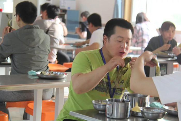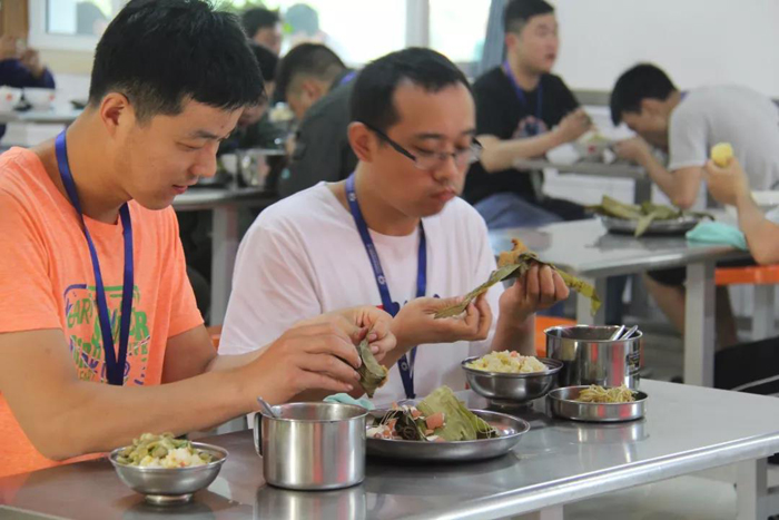 過端午,吃粽子是必不可少的。清香的箬葉包裹著潔白飽滿的糯米,入口綿軟,味道清甜,是不少人心中的美食。望美食堂早就準(zhǔn)備好了美味的粽子,供員工食用!