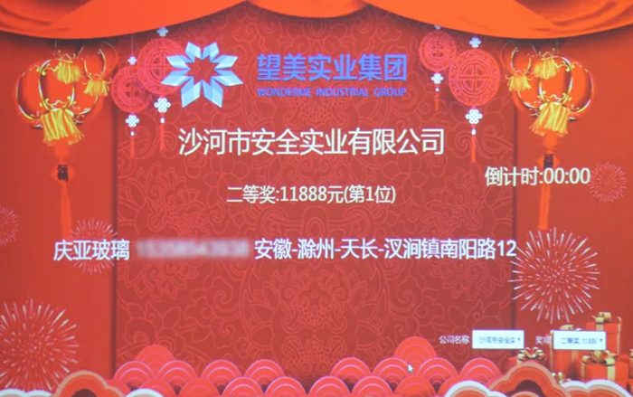 7月29日14:00,望美實業(yè)集團第六屆“掃碼領(lǐng)紅包,月底抽大獎”的抽獎活動如期舉行。 凡購買望美實業(yè)集團白玻、Low-E鍍膜玻璃的客戶通過微信掃描玻璃標簽上的二維碼,按照頁面提示操作,就有機會領(lǐng)取紅包;另外望美實業(yè)集團每月將從終端客戶中抽取幸運客戶,獲得大額獎金。 萬元大獎花落誰家呢?一起來揭曉! 恭喜以上中獎的客戶,再次提醒尊貴的客戶朋友們:為避免影響您與大獎擦肩而過,請您在掃碼領(lǐng)紅包的時候填寫真實有效的電話號碼和貴公司的全稱!如: 未中獎的客戶朋友不要難過,新一輪直播抽獎將在8月28日14:00準時開啟,請關(guān)注望美集團微信公眾號:望美集團(anquan8842178),也許下一份幸運大獎就是您的,不要錯過喲!