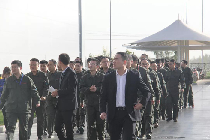 抵達目的地后,華興公司董事長冀葉軍給予了熱情接待。在相關(guān)領導的引領下,考察人員依次對華興公司的原料、生產(chǎn)加工、倉儲管理、包裝車間等工序進行了考察了解。