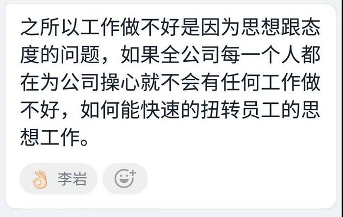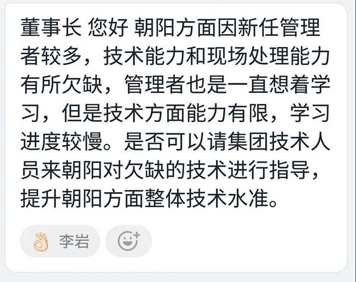在解答各級管理者提出的問題時,董事長指出:作為管理者,首先要做好自己,公私分明,牽引正能量,讓自己成為組織的主心骨,調(diào)動團隊的積極性、責任心。在這個特殊時期,所有人做任何工作都要真正理解其正確目的和作用,發(fā)揮真正的作用,杜絕繁瑣、冗雜的工作方式,讓員工輕松、簡單、高效地工作。