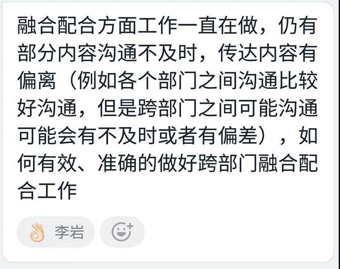 交流會上,各級管理者紛紛提出工作上的疑惑,董事長結(jié)合多年的工作經(jīng)驗,一一給予解答。
