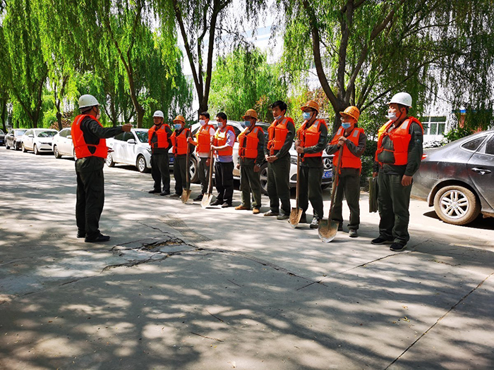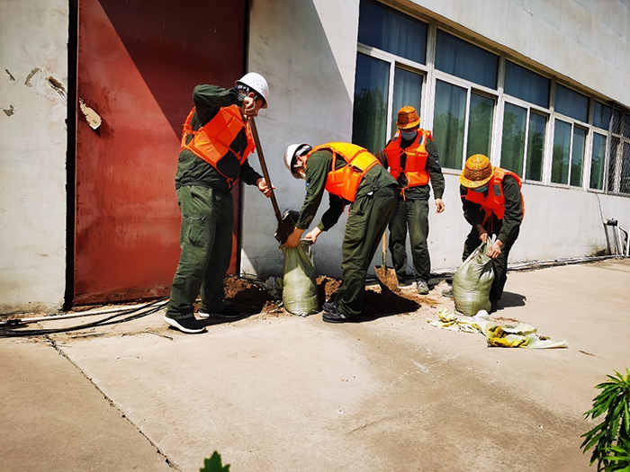 本次演練主要對(duì)下水道、排水管進(jìn)行查看,保證能夠正常排水、不造成堵塞情況,并分為四個(gè)小組對(duì)庫(kù)房地縫進(jìn)行加固沙土。
