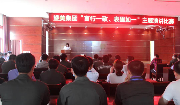 5月27日,一場(chǎng)以“言行一致、表里如一”為主題的演講比賽在望美集團(tuán)沙河安全、望美實(shí)業(yè)、天津中玻、中玻朝陽(yáng)公司同步舉行。 “言行一致、表里如一”是我們開展各項(xiàng)工作的基礎(chǔ),我們只有做好這一點(diǎn),才能取得他人的信任,而這份信任,則是自己在企業(yè)立足、個(gè)人發(fā)展的關(guān)鍵。同時(shí),做到“言行一致、表里如一”也是公司對(duì)每位員工的要求,唯有如此,才是真正的把公司的各項(xiàng)要求落到實(shí)處。 口號(hào)喊得再響,不如扎扎實(shí)實(shí)干一場(chǎng),我們要深刻認(rèn)識(shí)到,行動(dòng)永遠(yuǎn)比口號(hào)重要。當(dāng)然,我們不是不需要口號(hào),而是需要把口號(hào)進(jìn)一步落實(shí)成實(shí)實(shí)在在的行動(dòng)。 5月份,集團(tuán)下發(fā)了關(guān)于在全集團(tuán)開展“言行一致、表里如一”大討論活動(dòng)的倡議,通過(guò)各種形式的討論、剖析,讓這一主題在全體員工心中扎根、發(fā)芽。 在今天的比賽中,參賽選手再次通過(guò)演講的形式,表述對(duì)“言行一致、表里如一”的認(rèn)識(shí),并承諾在今后工作中會(huì)繼續(xù)強(qiáng)化認(rèn)知,深化執(zhí)行,讓“言行一致、表里如一”在全集團(tuán)形成一種風(fēng)氣。 四個(gè)公司近90人參加此次演講比賽。經(jīng)過(guò)激烈角逐和現(xiàn)場(chǎng)評(píng)委打分,最終評(píng)選出一二三等獎(jiǎng)及紀(jì)念獎(jiǎng)進(jìn)行獎(jiǎng)勵(lì)。 總分環(huán)節(jié)等待過(guò)程中,還穿插有精彩的節(jié)目表演,活躍現(xiàn)場(chǎng)氛圍。 希望通過(guò)本次主題演講活動(dòng),能夠強(qiáng)化全員對(duì)“言行一致,表里如一”的認(rèn)知,并內(nèi)化于心,外化于行,在工作中真正做到言必信,行必果,用扎扎實(shí)實(shí)的行動(dòng)踐行這一理念。 上下同欲者勝,2020年公司面臨的形勢(shì)全員都有目共睹。在這個(gè)特殊的時(shí)期,只要我們?nèi)珕T堅(jiān)守初心、勇?lián)姑、力出一孔、心向一處、全力以赴,那就是無(wú)堅(jiān)不摧的力量;只要我們?nèi)珕T堅(jiān)持言出必行、矢志奮斗,那就能為公司的發(fā)展增添一份力量。