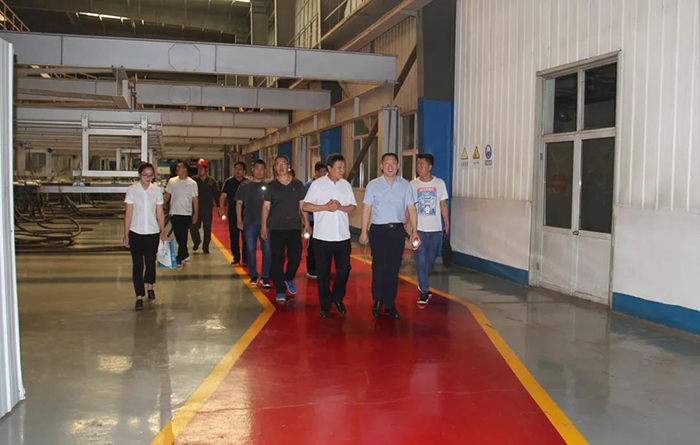 在銷售事業(yè)部總經(jīng)理姚建虎的陪同下,考察團(tuán)一行首先來(lái)到望美實(shí)業(yè)集團(tuán)旗下沙河安全公司生產(chǎn)車間進(jìn)行參觀。在參觀過(guò)程中,講解員對(duì)玻璃生產(chǎn)的成品工段、切裁工段、退火工段的主要設(shè)備及生產(chǎn)工藝進(jìn)行了講解。