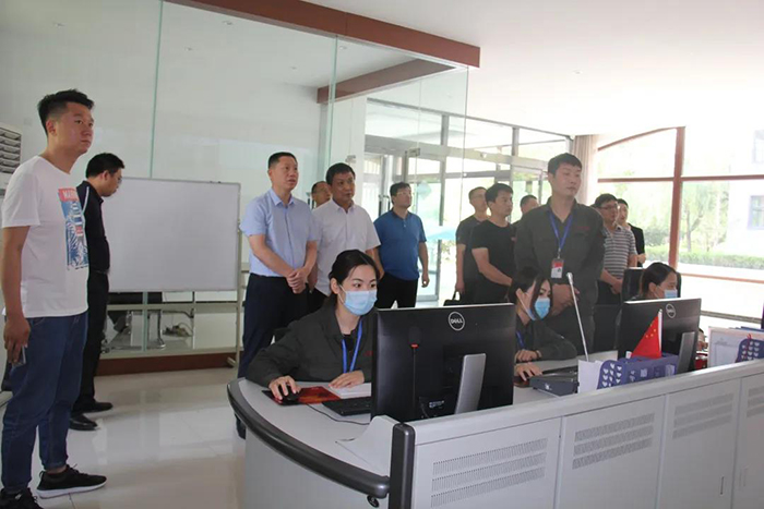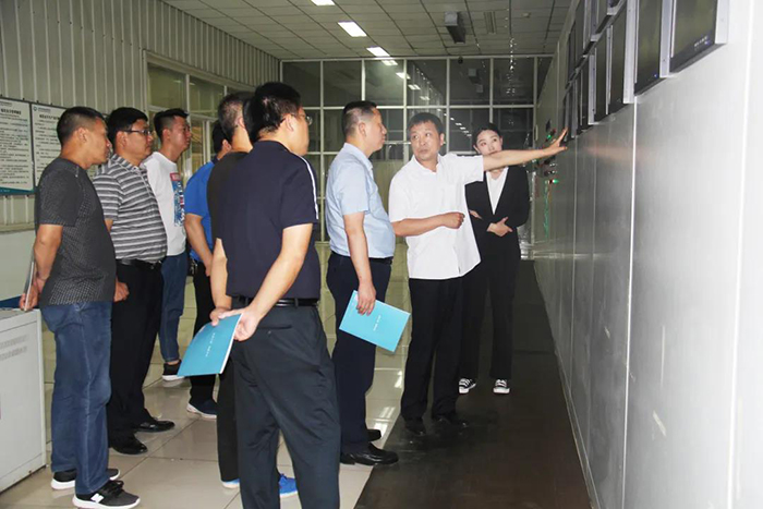 在中控室,銷售事業(yè)部總經(jīng)理姚建虎親自向考察團(tuán)領(lǐng)導(dǎo)介紹了玻璃的熔化、退火、成型等工藝。
