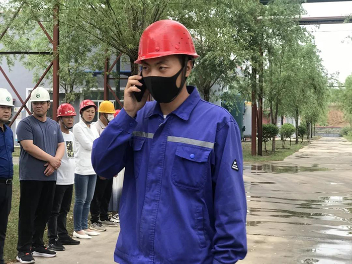同一時(shí)間,公司領(lǐng)導(dǎo)及相關(guān)部門(mén)負(fù)責(zé)人趕至現(xiàn)場(chǎng)并查看了解現(xiàn)場(chǎng)實(shí)際情況,在各部門(mén)的相互配合下,機(jī)修人員穿戴重型防護(hù)服趕赴泄漏現(xiàn)場(chǎng)進(jìn)行搶修處理。