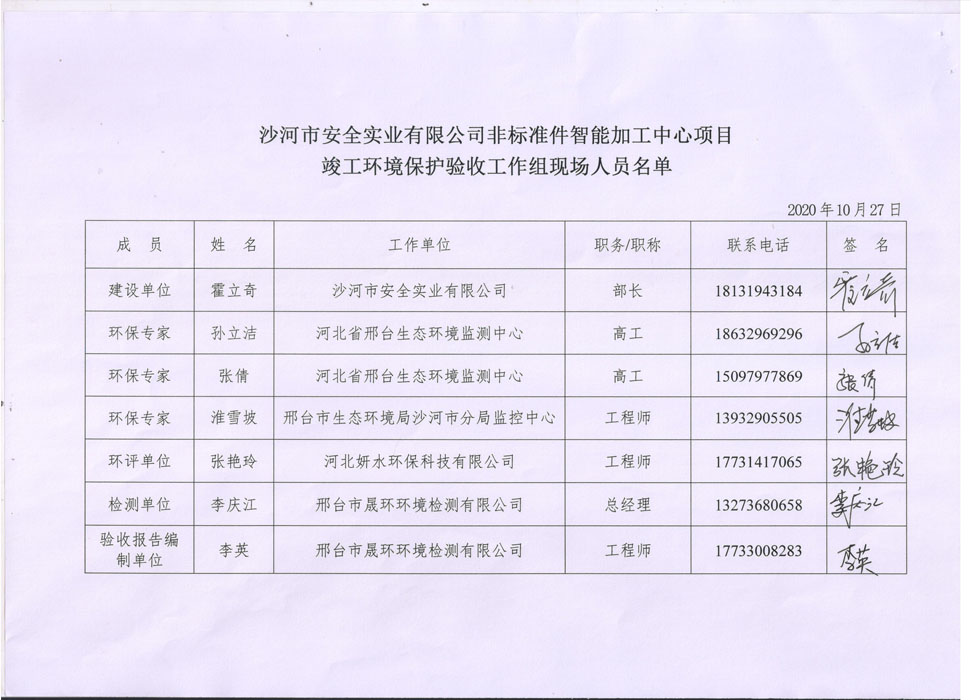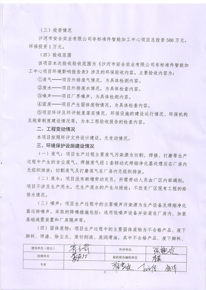 沙河市安全實業(yè)有限公司非標準件智能加工中心項目竣工環(huán)境保護驗收監(jiān)測報告表.pdf