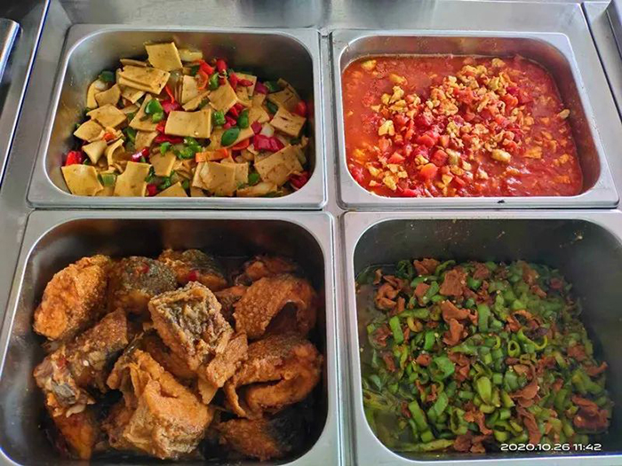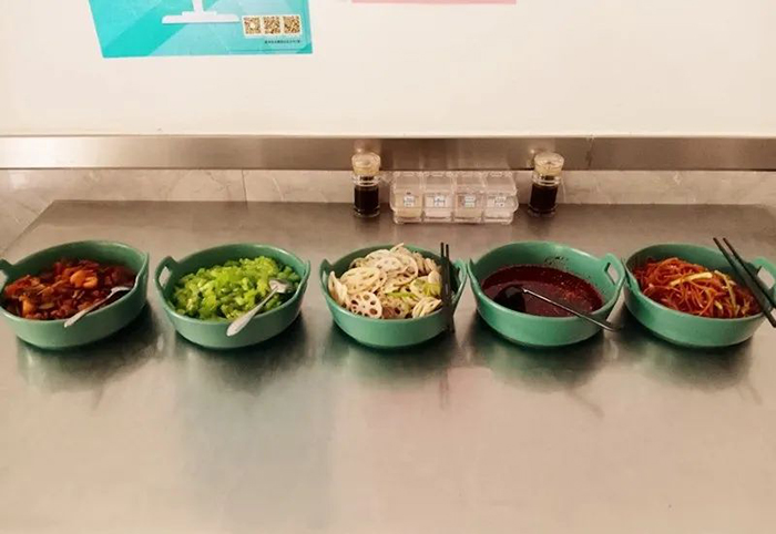 另外,食堂還充分考慮每個(gè)人飲食習(xí)慣差異及口味喜好不同,菜的鹽味、辣味相對(duì)適中,同時(shí)早中晚提供多種口感豐富的涼菜、咸菜小吃。對(duì)于喜歡吃辣的朋友,食堂也精心準(zhǔn)備了香辣油。