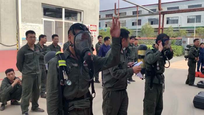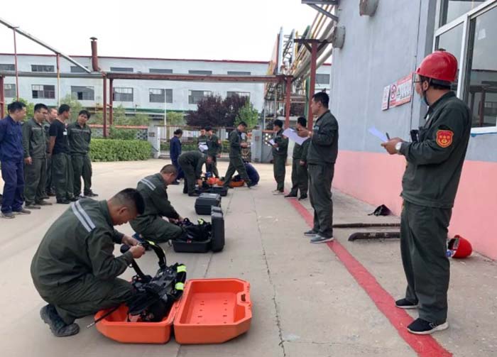比賽開始前,安全環(huán)保部部長助理賈四的宣讀了比賽規(guī)則及安全注意事項(xiàng),他講到本次活動(dòng)要切實(shí)起到增長技能和“練兵”作用,并預(yù)祝全體參賽人員取得優(yōu)異成績。隨后,安全環(huán)保部安全工程師張浦就相關(guān)穿戴要點(diǎn)進(jìn)行了深入淺出地講解,有效加深了全員對空氣呼吸器的認(rèn)識。