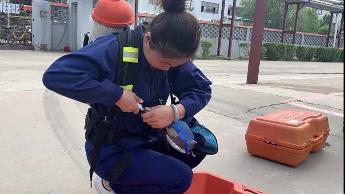 競賽分為男子組和女子組,隨著裁判的一聲令下,比賽開始,現(xiàn)場競賽氛圍熱烈,參賽成員技術(shù)嫻熟、沉著冷靜,有條不紊地檢查并穿戴空氣呼吸器,切實(shí)做到步驟準(zhǔn)確、動(dòng)作規(guī)范,動(dòng)作嫻熟地將空氣呼吸器按正確程序佩戴完畢。