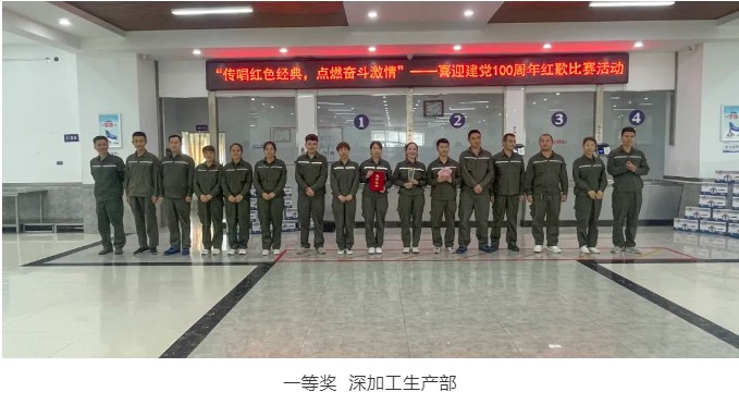 戰(zhàn)略運營部+PO辦公室+行政辦公室?guī)砹撕铣稄娷姂?zhàn)歌》,供應(yīng)鏈中心+采購中心帶來了紅歌串燒《贊歌獻給黨》,雙雙獲取二等獎。