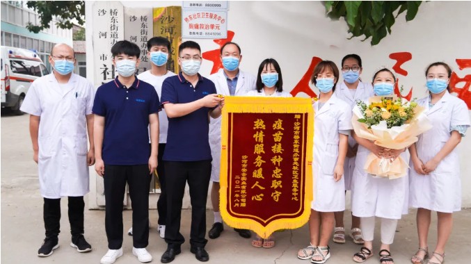 為表達(dá)謝意,2021年8月10日上午,行政辦公室代表沙河市安全實(shí)業(yè)有限公司將一面寫有“疫苗接種忠職守 熱情服務(wù)暖人心”的錦旗和鮮花親自送到衛(wèi)生院。