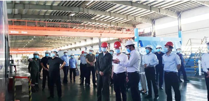 檢查組領(lǐng)導(dǎo)一行來到生產(chǎn)現(xiàn)場,實地查看了浮法玻璃生產(chǎn)車間、深加工在建項目施工現(xiàn)場及安全生產(chǎn)管理情況。領(lǐng)導(dǎo)們對公司良好的工作環(huán)境、整齊有序的自動化生產(chǎn)流程及先進(jìn)的安全環(huán)保管理理念給予了肯定。