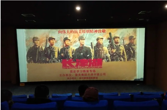 電影《長(zhǎng)津湖》是以抗美援朝戰(zhàn)爭(zhēng)第二次戰(zhàn)役中發(fā)生在長(zhǎng)津湖地區(qū)的一場(chǎng)重要戰(zhàn)役為背景,講述了一段波瀾壯闊的歷史。在觀影活動(dòng)開(kāi)始前,各片區(qū)企業(yè)文化專(zhuān)員已經(jīng)做好前期預(yù)熱,大家對(duì)此也是十分期待。
