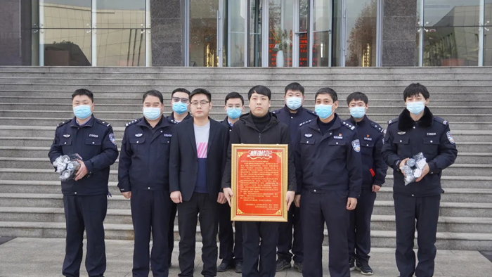 12月31日上午,沙河市公安局副局長楊新英、四級(jí)高級(jí)警長郭雙民帶領(lǐng)橋東、褡褳派出所民警將裱有相框的感謝信送到安全公司。