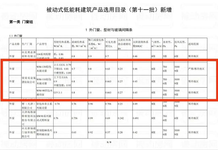 望美實(shí)業(yè)集團(tuán)有限公司旗下的門窗產(chǎn)品WM-130鋁包木被動(dòng)窗、WM-110鋁包木被動(dòng)窗和WM-98鋁包木被動(dòng)窗入選門窗組外門窗目錄。