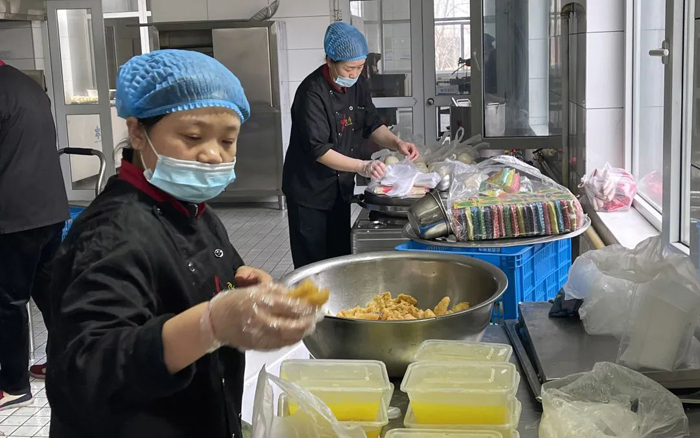 接到報飯的具體份兒數(shù),食堂工作人員便開始忙碌了。